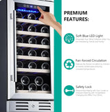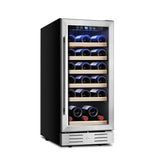 Elevate your wine collection with the Tuscany - 15" Stainless Steel Wine Refrigerator. This compact yet spacious wine cooler holds up to 30 bottles, featuring a sleek stainless steel door with double-layer tempered glass. The single zone temperature control and versatile installation options make it perfect for both built-in and freestanding use. It includes 6 high-quality wooden shelves that are both removable and equipped with stoppers to securely hold your collection.