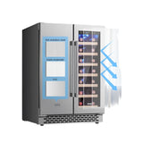 Enhance your home with the Napa Valley 24” Dual-Zone Wine and Beverage Refrigerator from Vino Manor. Expertly crafted, this premium wine cooler features advanced dual-zone temperature control, making it perfect for both wine and beverage storage. Its sleek stainless steel and tempered glass design ensures both durability and style, seamlessly fitting into any kitchen or bar space. Whether built-in or freestanding, this refrigerator is designed to maintain your beverages at the perfect temperature with quiet, energy-efficient performance.